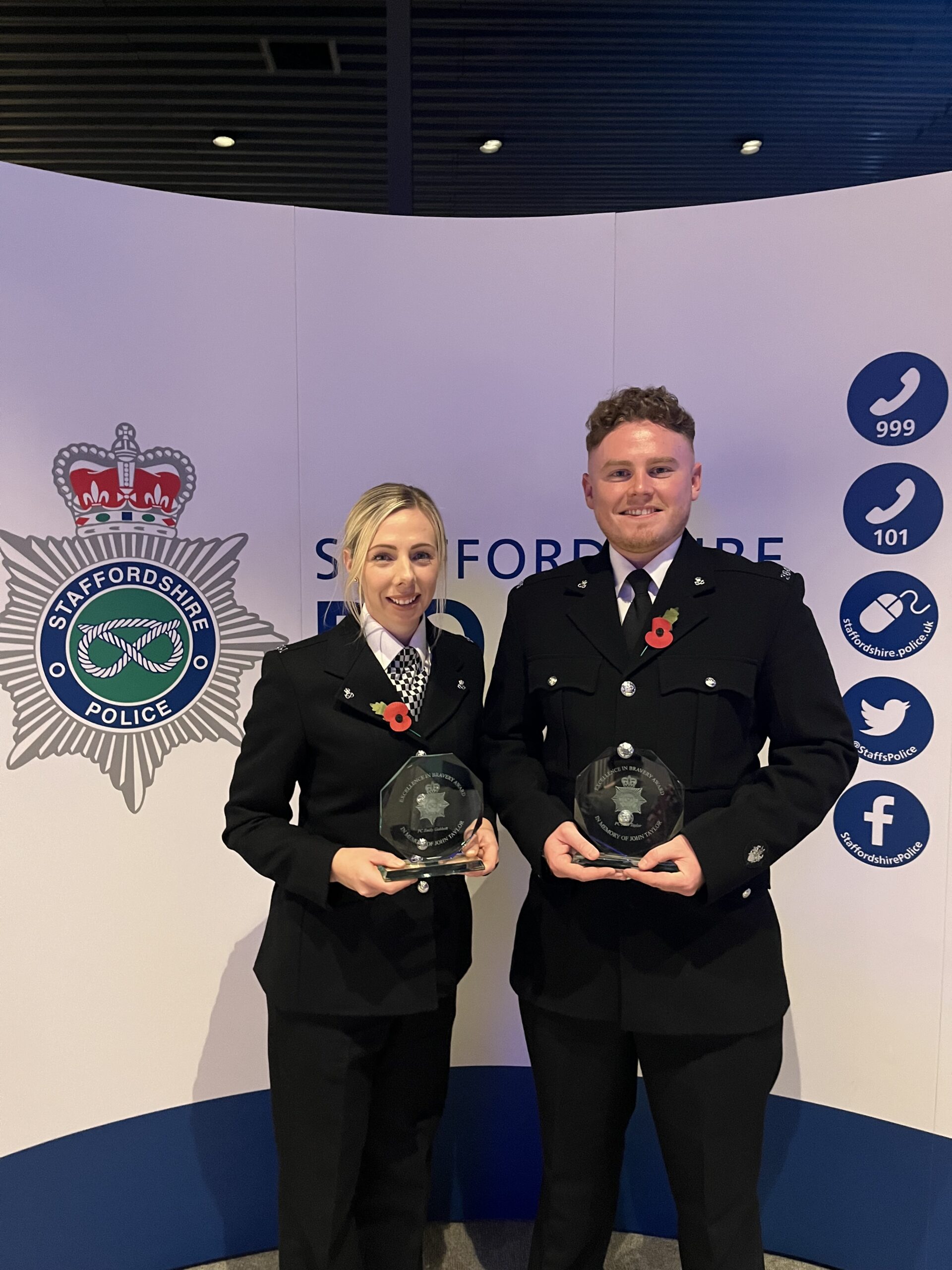 Two Staffordshire Police Federation members have been presented with the Force’s Excellence in Bravery Award after saving a woman from a house during a fire.