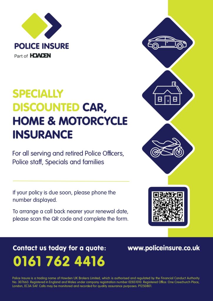“Police Insure” provides specially discounted insurance for all serving and retired Police officers, Police staff, members of the Special Constabulary and Police Support Volunteers as well as their partners and families.