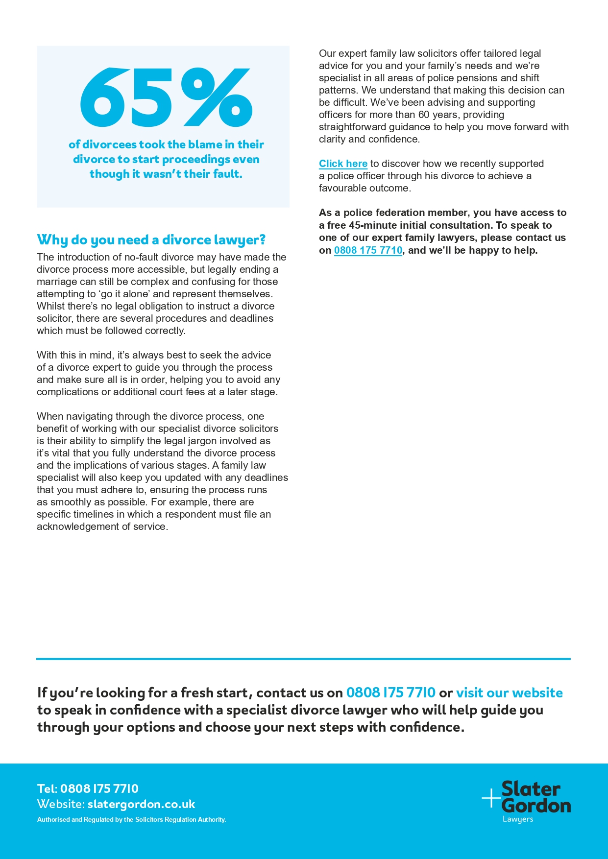 With the introduction of no-fault divorce on 6 April 2022, Police Federation members can access a free 45-minute consultation, and benefit from an applicant fixed-fee divorce for an exclusive discounted price of only £420 (incl. VAT), plus court fee.
